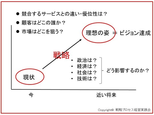 独立した経営コンサルタントの事業戦略においても、他の事業と同じように「現状」から「理想の姿」へ到達するためのシナリオを描くことが不可欠です。