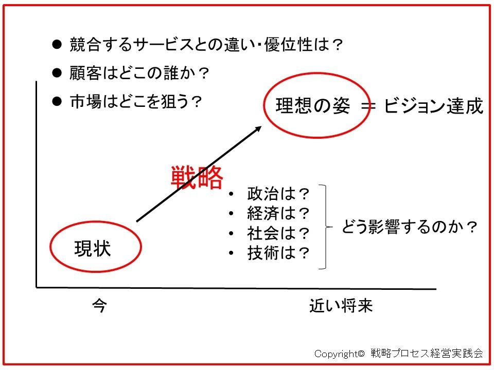 市場の隙を見つけ出し、そこで自分の強みを発揮すること。その上で考えるべき本当に重要なことは、 「現状」と「理想の姿」 の2つに尽きます。
