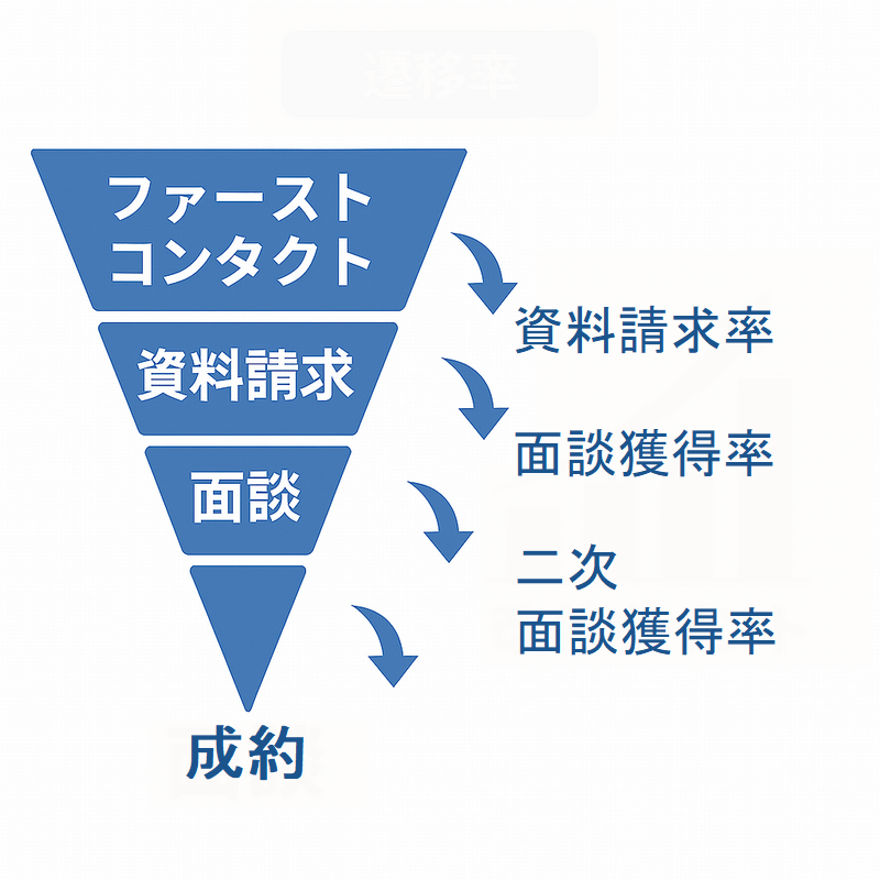 顧客との関係を「出会い → 契約(購入) → リピート → ファン化」という流れ(プロセス)で捉えます。